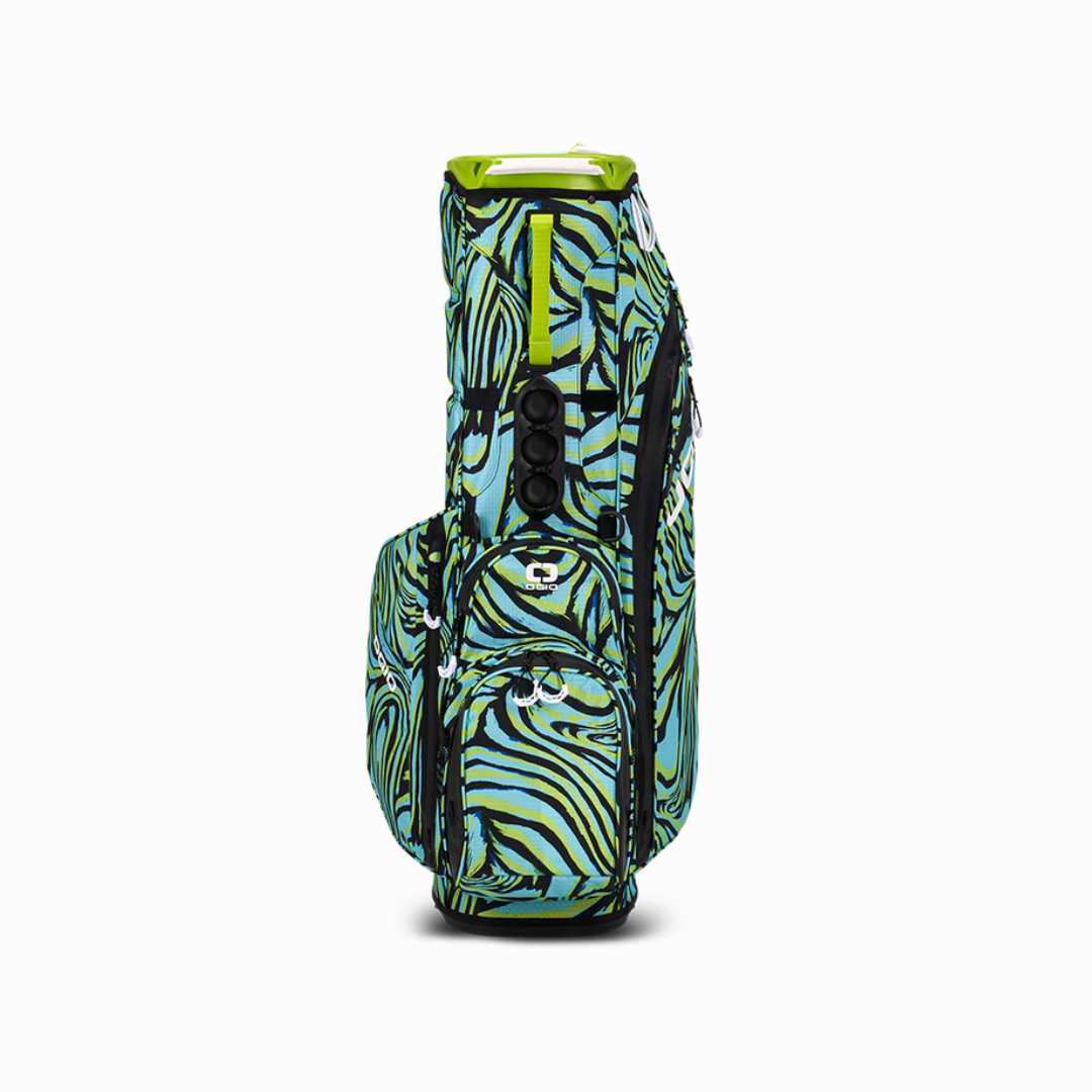 The All Elements full waterproof Hybrid stand bag remains in the line for 2024 with matching bold and daring colours to the Silencer cart bag.