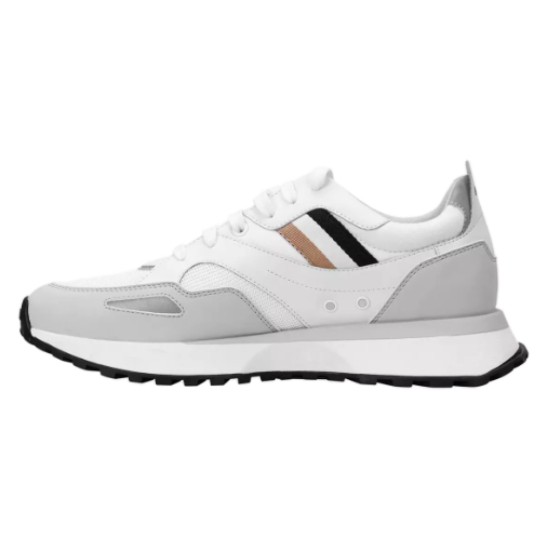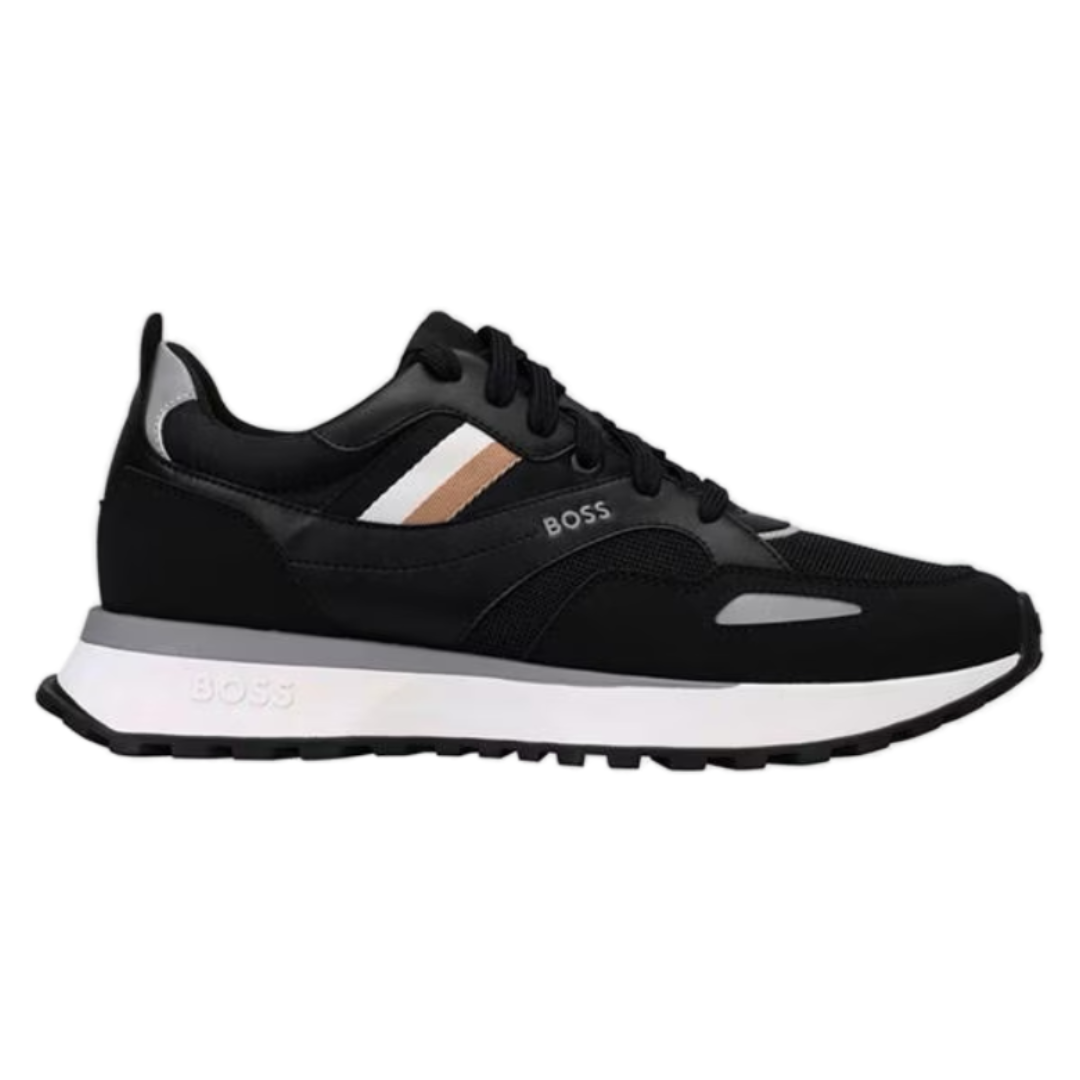 Casual trainers made in Portugal by BOSS. These low-profile lace-ups are trimmed with suede details and feature a raised logo at the side panel, plus further branding at the heel and tongue. The rubber cupsole is enriched with embossed monograms at the base. We continuously look for more responsible ways to produce and finish our products. SEAQUAL™ actively addresses the pollution of our seas by upcycling marine plastic into fabric. We support this initiative for a cleaner environment with the uppers of this pair, which are made from 100% recycled polyester. Product exclusively available on online platforms directly operated by HUGO BOSS.