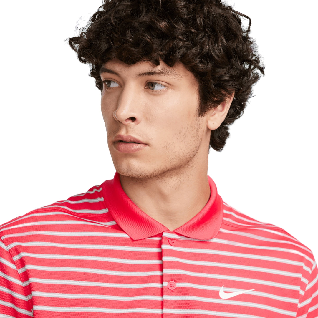 Description: Elevate your golf and casual wear with the Nike Victory Stripe Polo - a perfect fusion of style and performance. Crafted with precision and designed to make a statement, this polo showcases sleek victory stripes that reflect your winning attitude on and off the course.