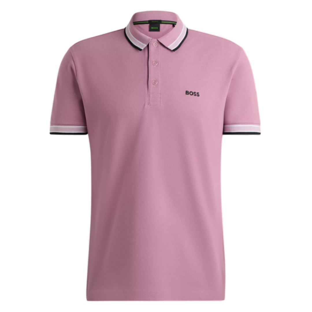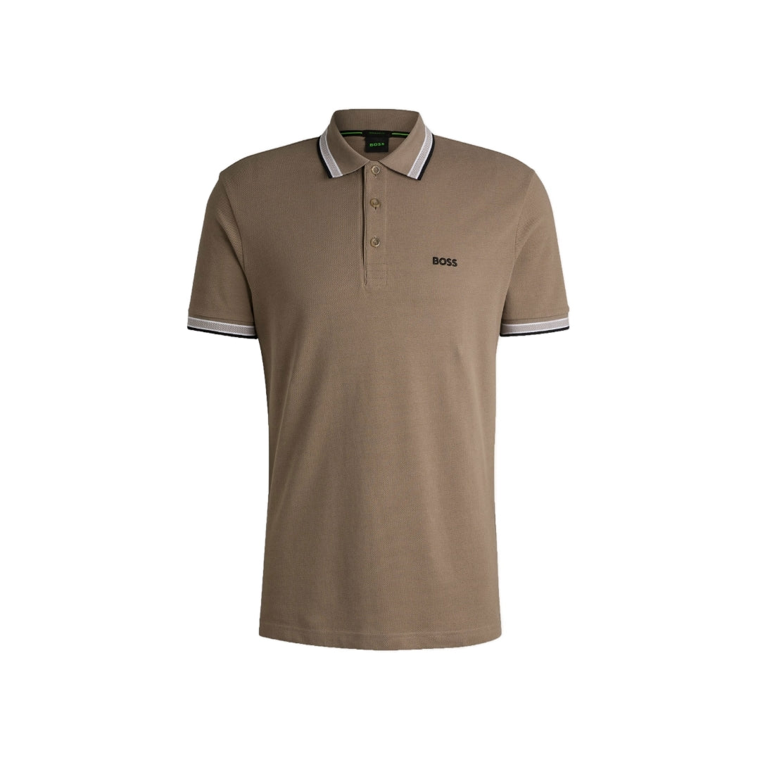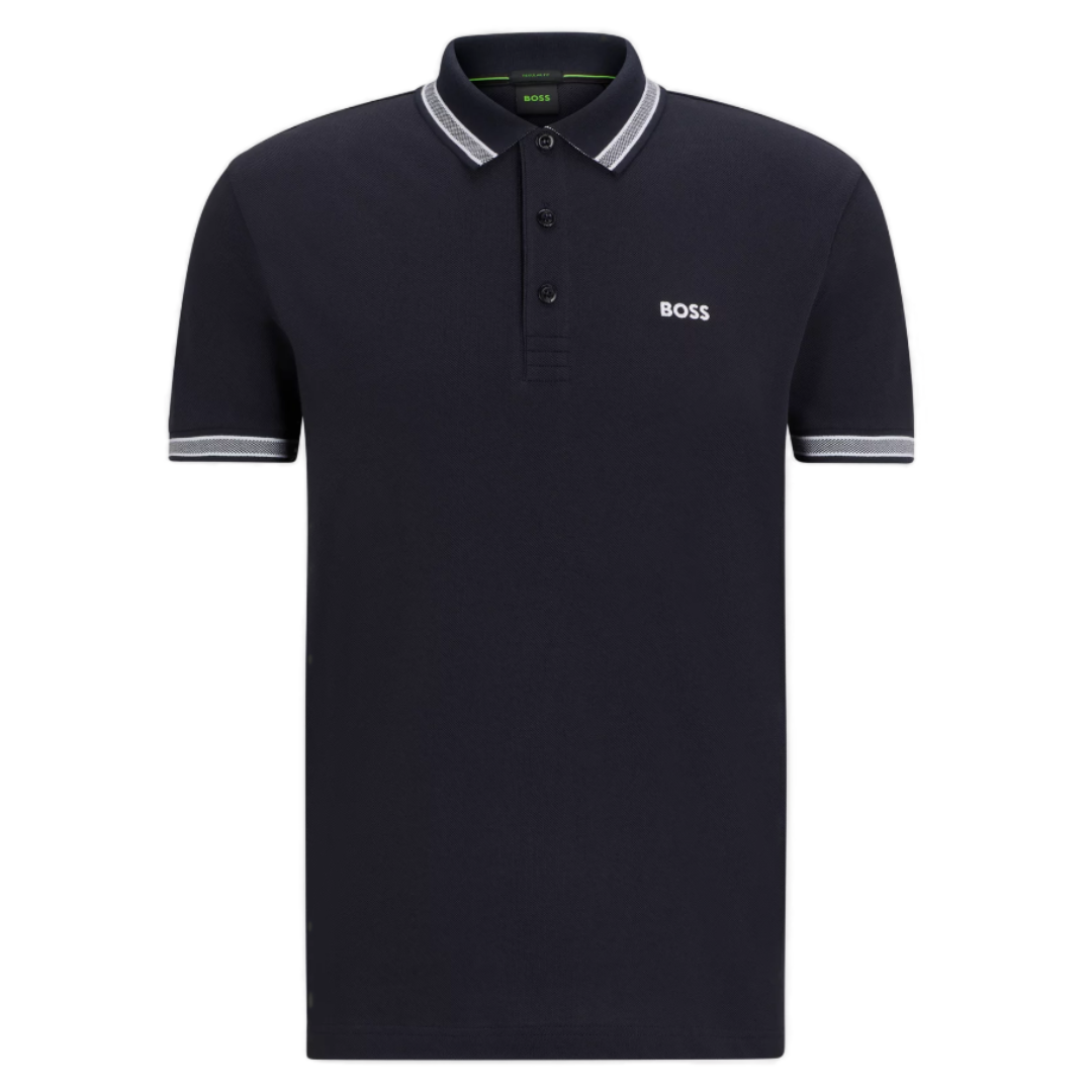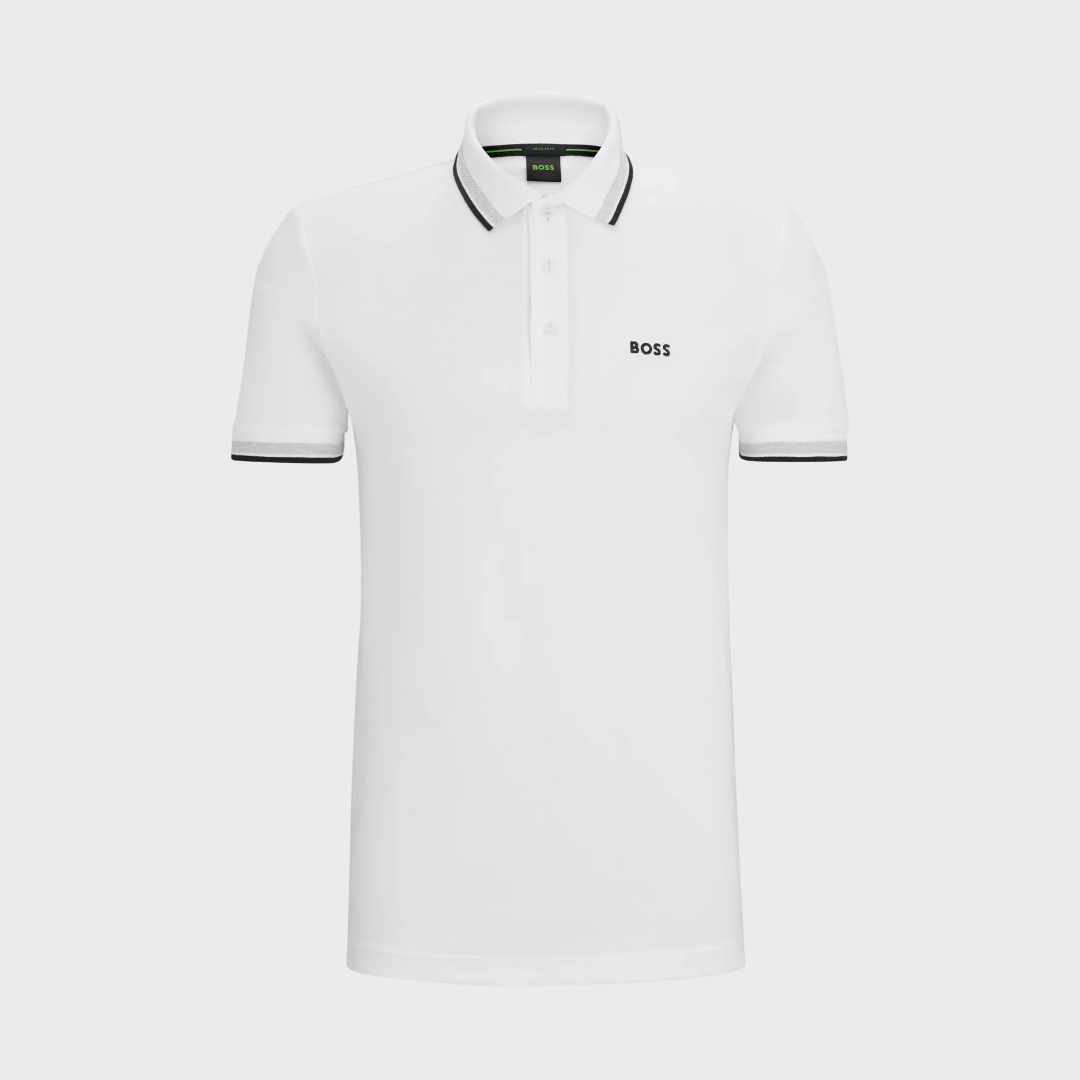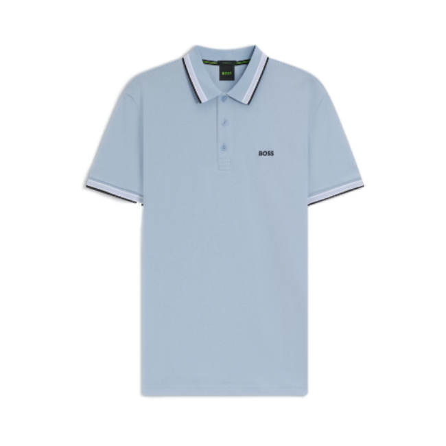 A versatile polo shirt in breathable piqué by BOSS Menswear. Designed with a curved BOSS logo at the left chest, this regular-fit polo shirt is detailed with sportive stripes and branding at the undercollar. For BOSS Responsible products, they always use at least 60% more sustainable raw materials. This garment is made from at least 60% certified organic cotton. Organic cotton is only grown with naturally occurring substances and no genetically modified seeds. Organic farming encourages the use of natural measures, such as crop rotation and composting, to control pests and diseases rather than relying on chemicals.