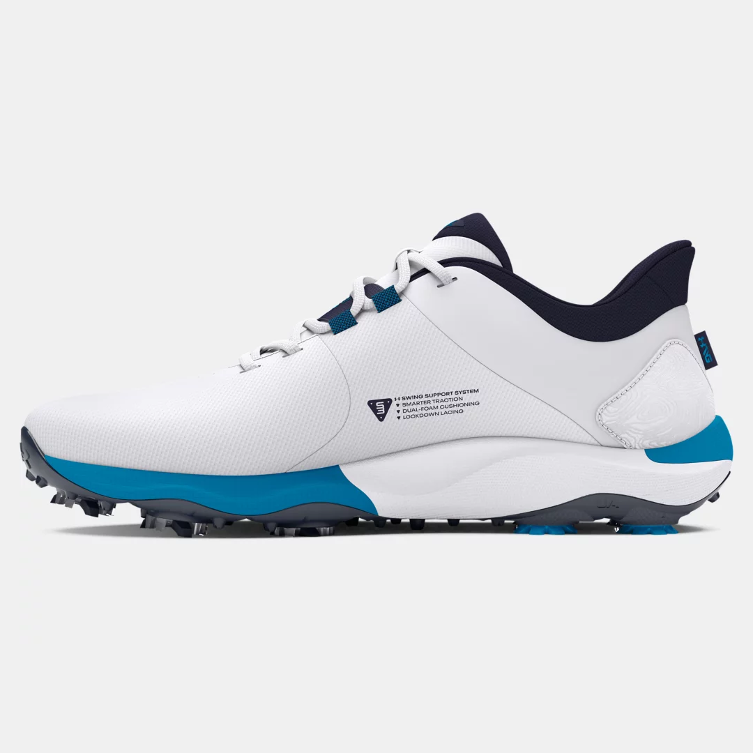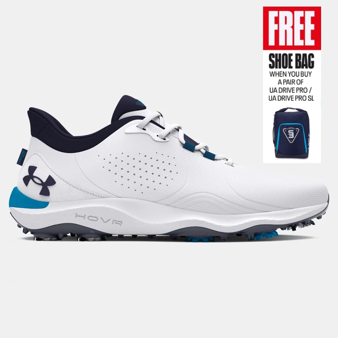 Elevate your golf game with the Under Armour Drive Pro Golf Shoes. Designed for ultimate performance on the course, these shoes seamlessly blend style and functionality. Featuring cutting-edge technology, the Drive Pro ensures stability, comfort, and traction with every swing. The lightweight construction and breathable materials keep you cool under pressure, while the sleek design adds a touch of sophistication to your golf ensemble. Step onto the fairway with confidence, supported by Under Armour's commitment to innovation and excellence. Unleash your full potential and conquer the greens with the Drive Pro Golf Shoes – where style meets precision.