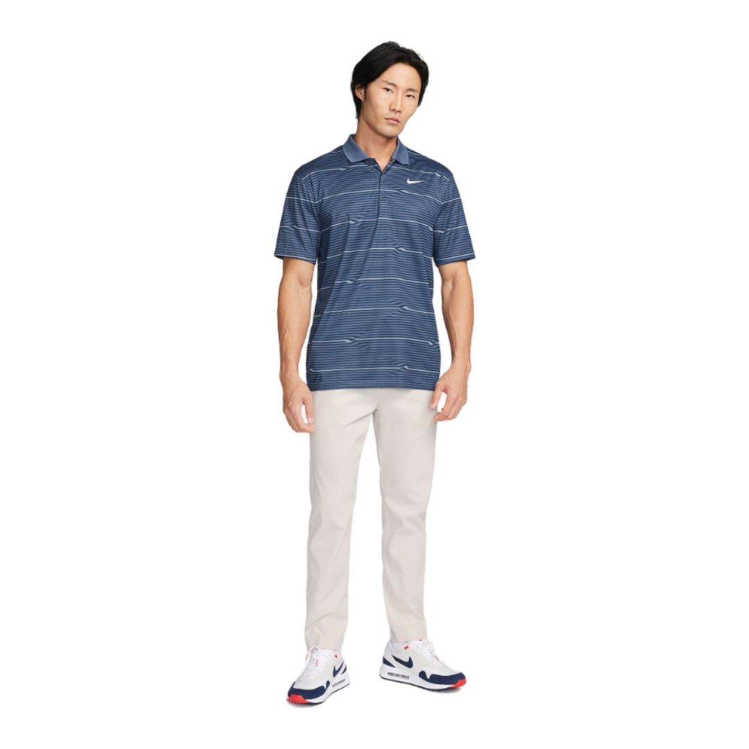 Feel your best whenever you hit the course with our relaxed-fit Victory Polo. This classic golf staple is crafted with stretchy, breathable fabric that helps keep the sweat off. Inspired by the flight path and velocity of your shot, the ripple effect re-imagines the traditional stripes on your favourite golf top.